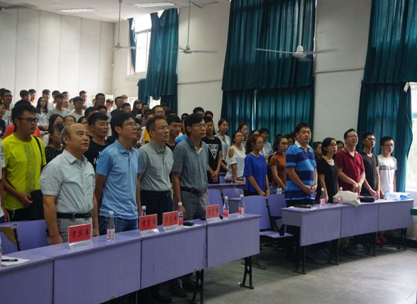 一年一度秋风劲,八方学子来相聚。9月24日下午14:30在教三楼207,数学与物理学院2016级新生开学典礼在雄壮的国歌声中拉开了序幕。院长刘安平老师、党委书记李宇凯老师、副院长张光勇老师、党委副书记李杰老师以及各系部老师出席典礼。2016级全体本科新生和研究生新生参加开学典礼。2016级辅导员孙宇涛老师主持开学典礼。