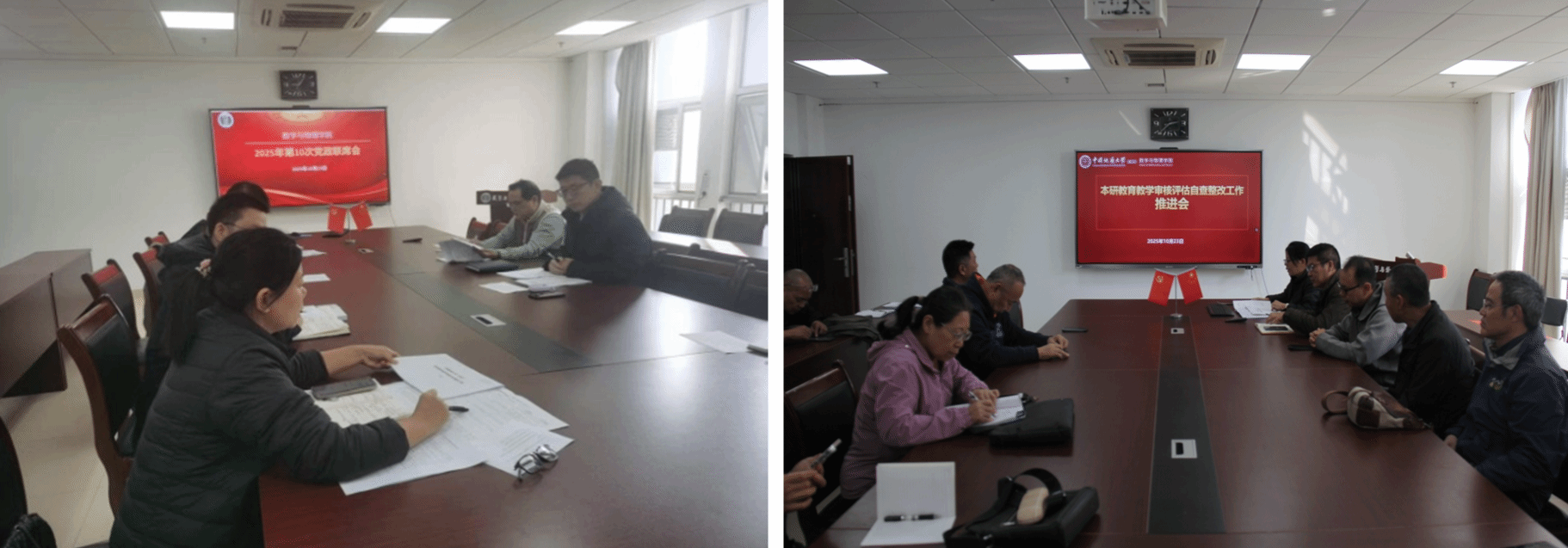 当日上午,学院召开党政联席会议,专题研究部署本科教育教学审核评估整改工作。会议审议通过了《数学与物理学院本科教育教学审核评估整改方案》。该方案紧密结合专家组评估报告、访谈反馈问题,对照学校整改台账及学院自查情况,系统梳理出党委领导、质量保障、专业建设、师资队伍、教学改革等重点领域的问题清单,逐一明确整改措施、责任分工、时间节点及预期成效,为后续整改工作提供了清晰的“路线图”。会议强调,本科教育教学审核评估整改是深化教学改革、提升育人质量的关键抓手,要进一步提高政治站位,始终坚持问题导向,凝聚多方工作合力,统筹推进各项整改任务,切实保障整改工作落地见效,真正实现“以评促建、以评促改、以评促管、以评促强”的核心目标。