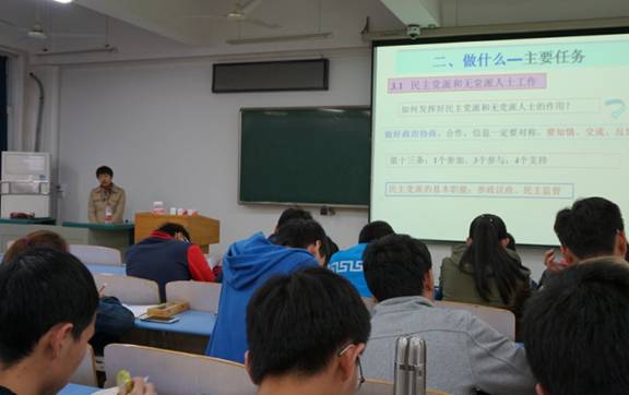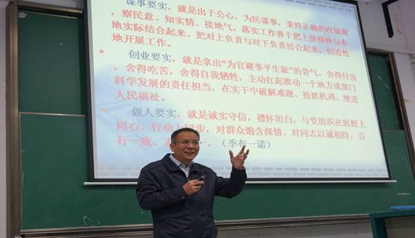 首先,第一讲由校党委副书记朱勤文带来《党的“四个全面战略”》为主题的讲座,讲座期间同学们参与积极,并与老师积极配合。朱勤文老师在讲座中与同学们以问答的形式进行互动,朱老师充分肯定了同学们学习的积极性同时又强调了我们党课开展的必要性与迫切性。随后,由丁振国教授讲授以《党的作风》为主题的党课。丁老师以革命前辈为榜样,以时代领袖为模范,教育同学们认识党风,了解党风的重要性,关注党风面临新形势,全面认识党风现象,并对同学们的自身道德素质与修养提出殷切希望与要求。