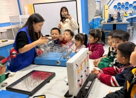 每一项实验都由老师们先进行规范演示,再用浅显生动的语言解释背后的科学道理。孩子们边看边问,边问边想,在轻松愉快的氛围中完成了从“惊讶”到“思考”的跨越。“为什么那个花自己就开了?”“水真的能发电吗?”整个参观过程中,提问声、欢呼声此起彼伏。小朋友们争相动手操作,志愿者和老师们耐心引导,鼓励他们表达自己的观察和猜想。活动结束后,孩子们依然兴奋地讨论个不停,说看到了好多神奇有趣的实验,真是大开眼界。带班老师表示:“这样的活动不仅让孩子们玩得开心,更重要的是在他们心里埋下了探索科学的小种子。他们对‘为什么’的好奇,就是最宝贵的科学启蒙。”