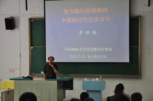 本次讲座,李祖超为我院学生党员作了题为“努力践行雷锋精神,争做新时代优秀青年”的主题报告。他从雷锋精神的时代内涵、学习雷锋精神的现代意义、争当优秀青年等方面深入浅出地为大家做了深刻的阐述。首先,李所长从胡锦涛主席在纪念建团90周年大会上对青年提出的五点要求入手,论述了学习雷锋精神与胡主席所提出的“五个坚持”在要求上的一致性和精神上的相通性。他说,学雷锋是与时俱进的,大学生学雷锋尤其体现在树立崇高理想、坚定信念、刻苦学习、多做贡献四个方面,并倡导在座学生党员将学雷锋与践行社会主义核心价值体系相结合,学习身边的典型,不断发挥先锋模范作用,