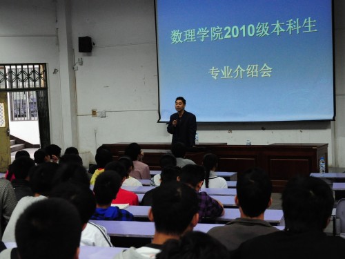 在数学专业讲解时,罗文强老师首先对该专业的发展过程做了简单介绍,使同学们对该专业有了更深了解,同时,他建议大家既要明确专业目标,合理安排时间,劳逸结合,同时也要加强对英语和计算机能力学习。杨瑞琰教授在信息与计算科学专业介绍会上,首先纠正了新生对该专业的错误看法,他指出,该专业是以数学为主研究算法的学科,是数学的基础课程,要求同学们在了解信息的基本框架同时,要努力学会操控计算机。杨老师以电脑游戏为例,展现了该专业的广泛应用及其趣味之处。在物理学专业介绍会上,罗中杰教授详细介绍了专业情况后,带领2010级物理学新生参观了我院物理实验室,同时,他细心为同学们讲解每一个实验设备的工作原理和操作程序。专业介绍会的圆满举行,使我院2010级新生对各自专业情况都有了更深的了解,专业学习兴趣也较大提高。
