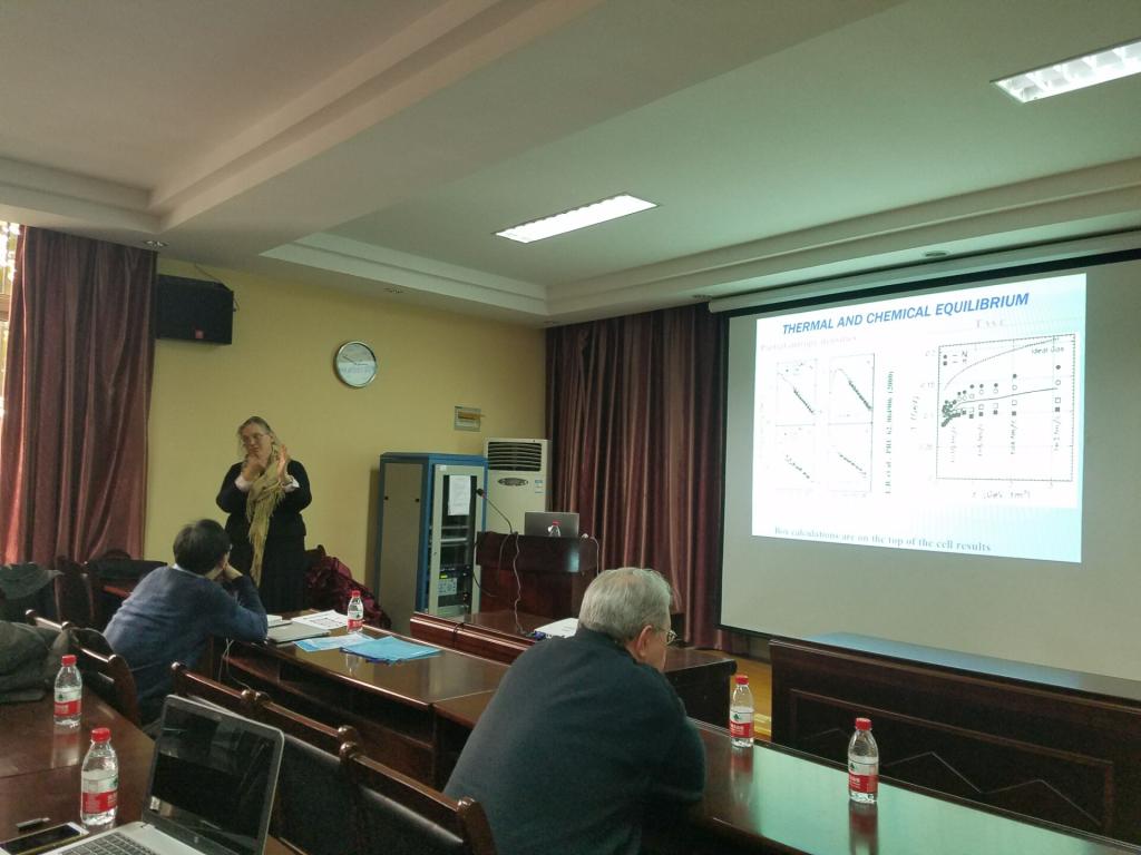 Bravina教授和Evgeny研究员还与一些国内特邀专家及我院部分教师和研究生举办了题为“Workshop on Nuclear and Particle Physics- Strong Interacting System in Extreme Environments”的小型学术研讨会,对目前国际上相关问题的研究进行了交流讨论。会后,Bravina教授和Evgeny研究员还与我院理论物理研究方向的教师进行了座谈,就我院物理系理论物理的研究和学科建设问题,提出了有益的建议。