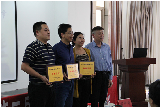 4月19日下午,学校“学习之路”第二届书香文化节启动暨2017年度“阅读之星”、“跑馆达人”、“书香学院”等奖项颁奖、授牌仪式在图书馆十楼报告厅隆重举行。傅安洲副校长,宣传部、学工处、研工部、工会、团委、出版社、期刊社及借阅量排前十的学院负责人、获奖学生、图书馆全体教职工参加了启动仪式。我院被学校授予首届“书香学院”荣誉称号。另外,我院研究生朱思瑛、本科生杨培赫获得学校“阅读之星”荣誉称号。