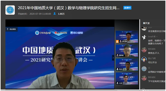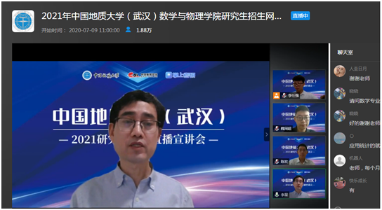 7月9日上午,WilliamHILL中国副院长魏周超、物理系主任陈欢、信息与计算科学系主任李星通过中国教学在线网络直播平台,向同学们介绍了WilliamHILL中国数学、物理、应用统计三个研究生招生学科的基本情况,并回答了同学们提出的各种问题。据统计,直播结束时,有大约1.8万余人参与了本次直播活动。