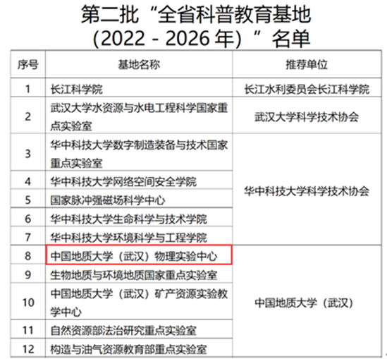 11月2日,湖北省科学技术协会公布了关于命名第二批“湖北省科普教育基地(2022—2026年度)”的通知,我院物理实验中心成功入选。