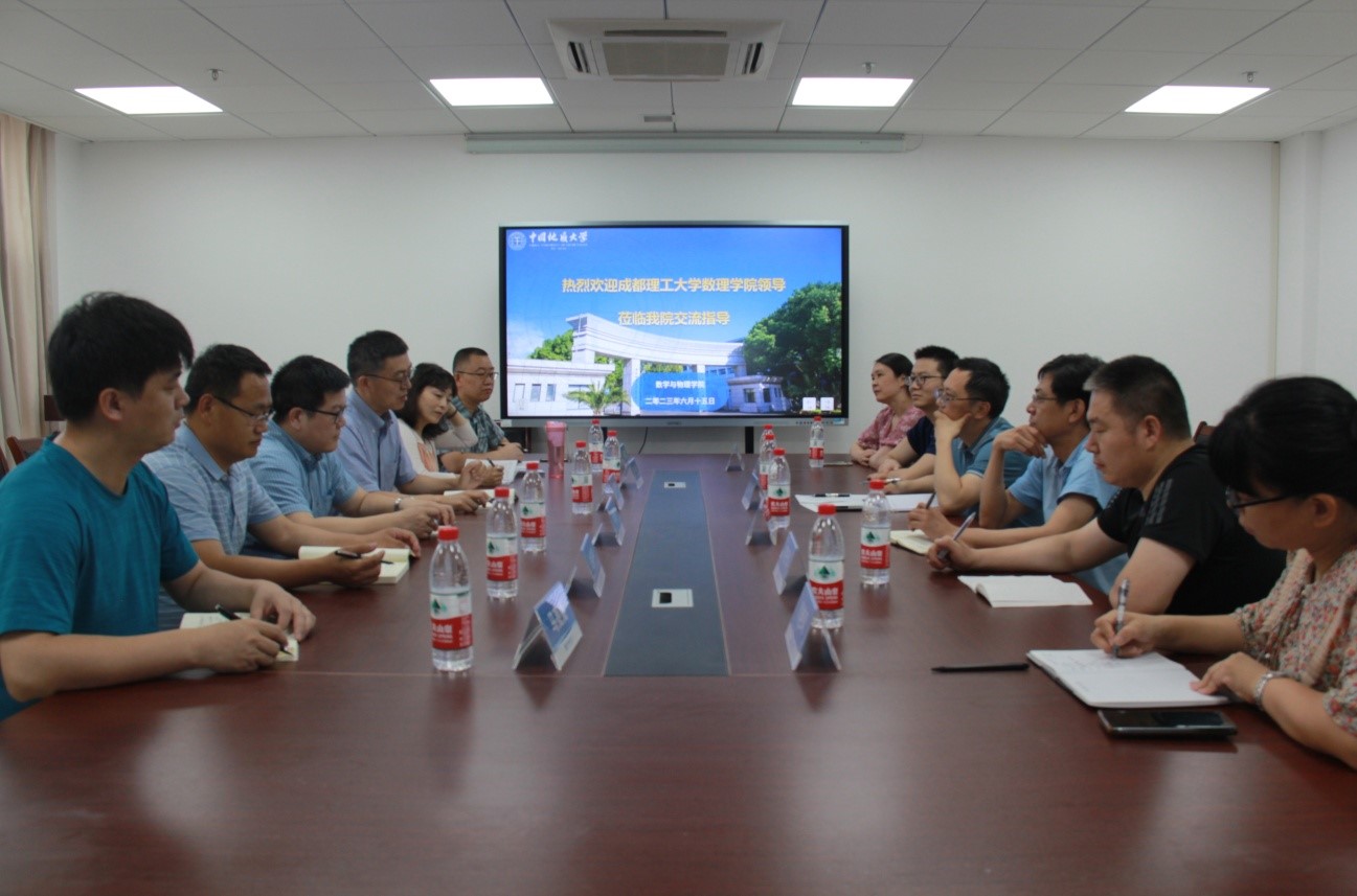 2023年6月15日下午,成都理工大学WilliamHILL中国副院长张传瑜、基础数学教学部主任余海洋、基础数学教学部支部书记舒畅、大学物理教学部副主任史顺平、田荣刚等一行来我院进行工作交流。学院副院长黄刚、副院长张光勇、大学物理教学部主任陈琦丽、数学系主任王毅、大学数学教学部主任郭艳凤、物理实验中心主任何开华出席了此次会议。会议由副院长黄刚教授主持。