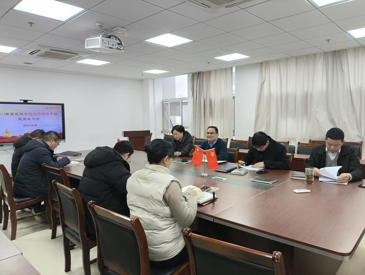 2月20日下午,数学与物理学院2024年度党员领导干部民主生活会在东区教学综合楼A1505召开。学院原党委书记于晓舟、现任院领导班子全体成员参加会议,院工会主席、团委书记等列席会议。会议由院党委书记张基得主持。
