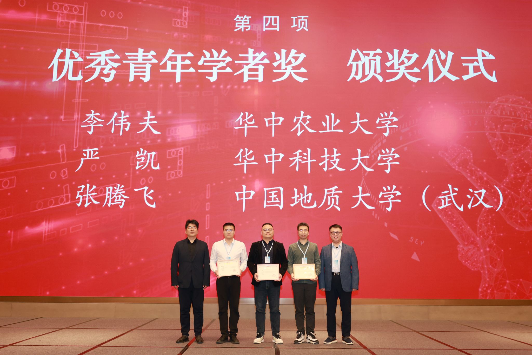 颁奖仪式环节,大会颁发了2024年学会青年学者奖及优秀研究生论文奖。我校数学与物理学院张腾飞副教授等三人获得学会第三届青年学者奖。会议期间,张腾飞副教授为大会做青年学者报告《Self-Organized Systems: Kinetic and Hydrodynamic Models》,并与分会场会员讨论交流。