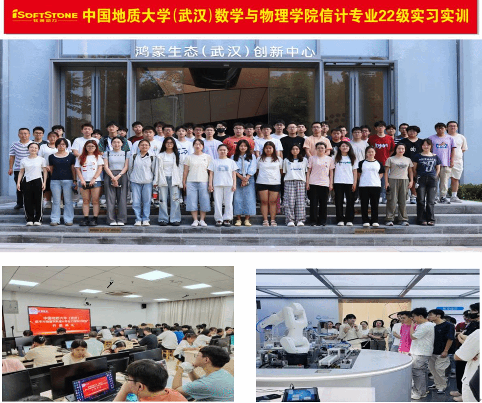 2025年9月1日起,我院信息与计算科学专业2022级学生进行为期两周的专业实训活动,在软通公司专业教师指导下进行了华为鸿蒙OS系统学习,掌握了部分组件实验功能,同时进行了项目迭代开发和相关案例实战,期间参观了武汉市洪山区鸿蒙生态(武汉)创新中心,最后开展了OpenHarmony人才认证考试和校园招聘宣传。