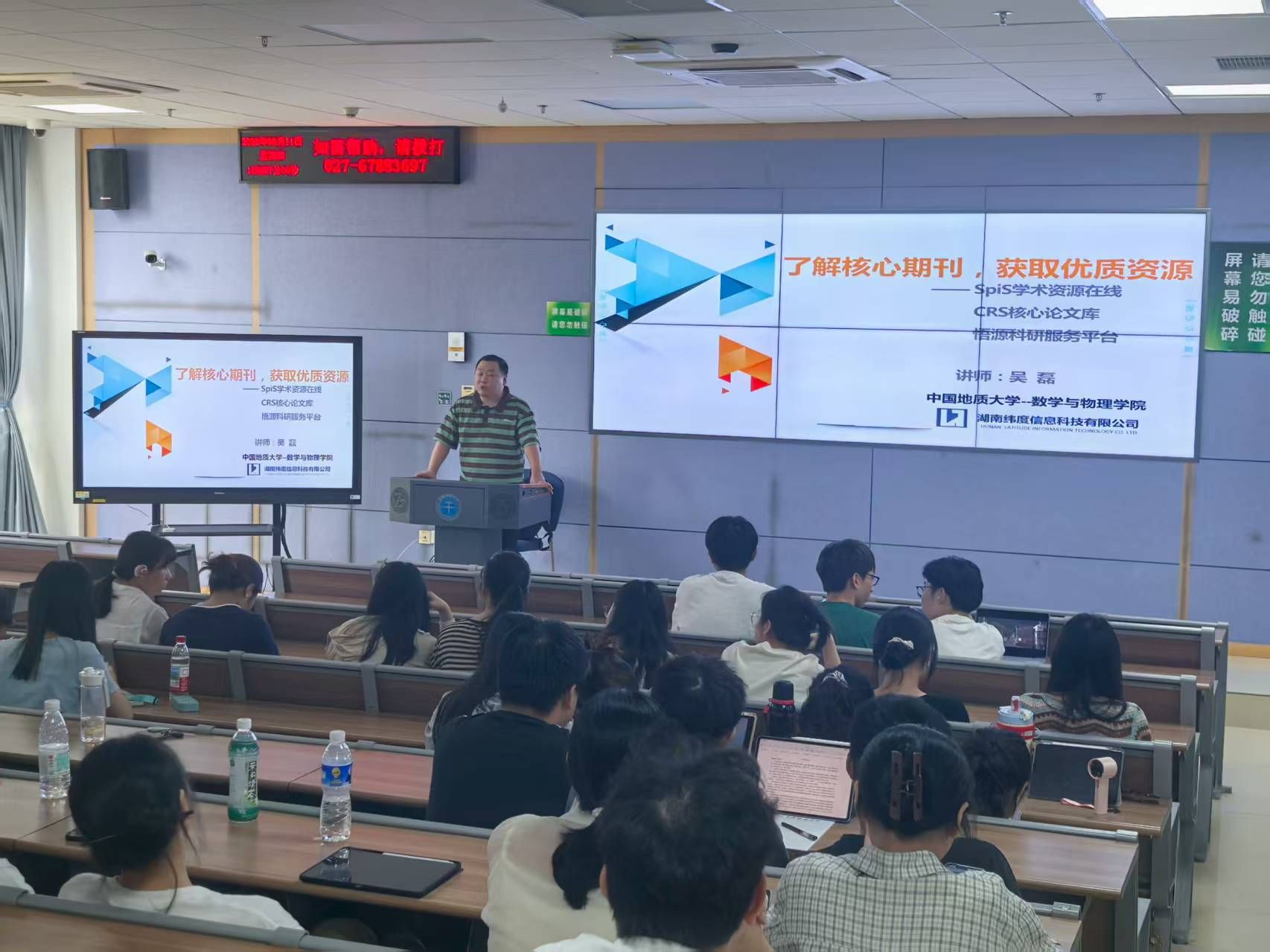 在实践操作环节,吴老师重点介绍了学校图书馆购买的MathSciNet、SCI、Elsevier等数理学科核心数据库的使用技巧,现场演示了如何通过关键词组合、引文追踪等方法高效检索文献,最后还建议同学们建立定期跟踪重要期刊和学者的习惯。整场讲座内容详实,既有方法论的指导,又有实用技能的传授,为新生们的科研之路提供了重要支撑。