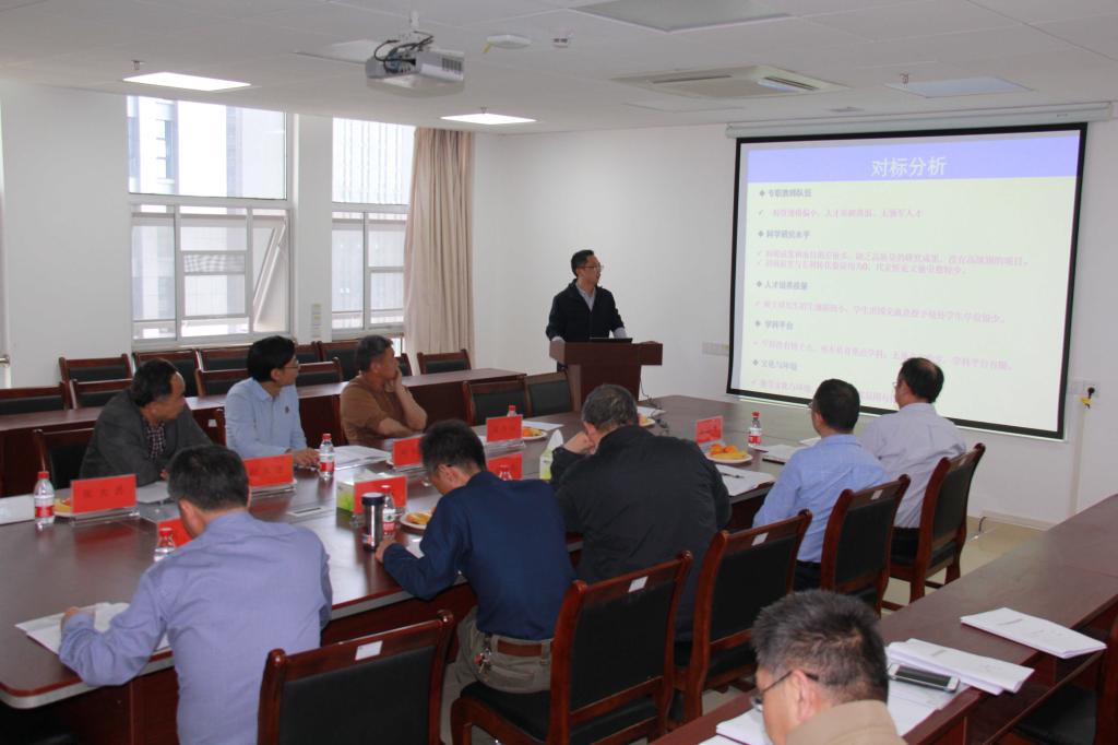 随后,黄刚教授做数学学科对标建设和人才队伍建设规划报告。报告选取国内两所对标学校,从学科方向、人才队伍、在校生质量、学科研究水平、社会服务能力与学科声誉等方面进行系统比较,全面分析我校数学学科建设中的不足,指出学科阶段性重点赶超的目标和措施,为学科建设与发展提供方向。