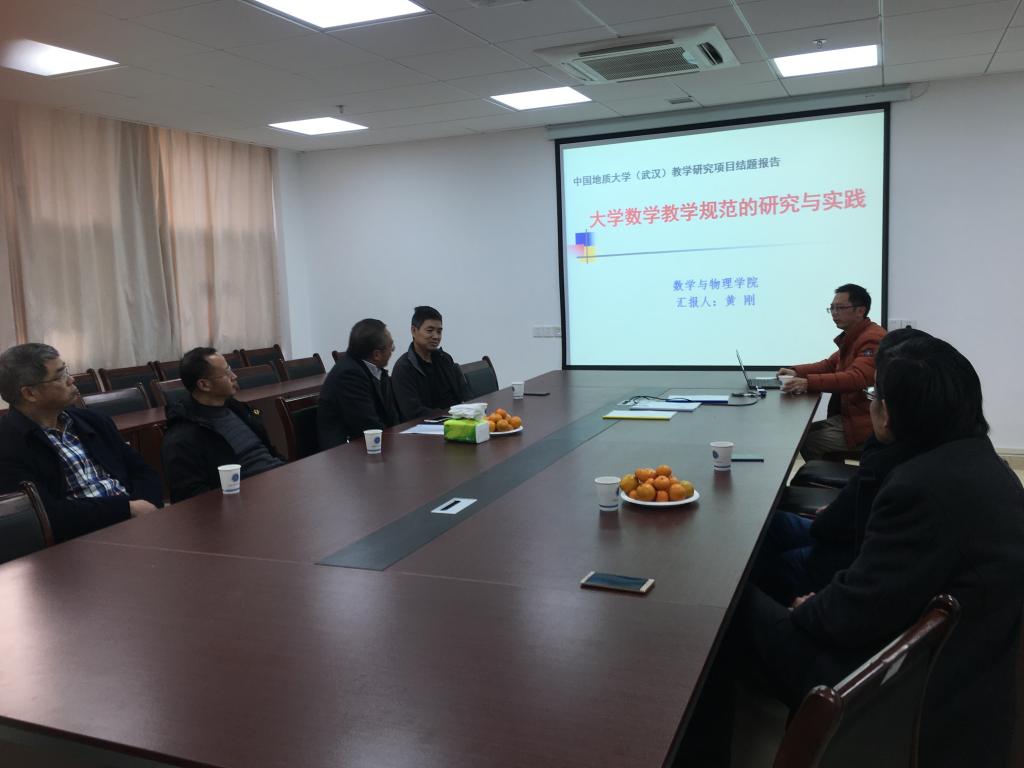 座谈会后,与会专家还对黄刚教授和肖海军教授的湖北省教学研究项目“大学数学教学规范化的研究与实践”进行了评审。与会专家对我院的大学数学教学的规范化水平进行了肯定,并且一致认为:该教学研究项目的研究内容丰富、可实践型强,现有的规范化研究如能得到学校的继续支持,我校的教学规范化水平一定能够迈上一个新台阶,为更多高校学习。