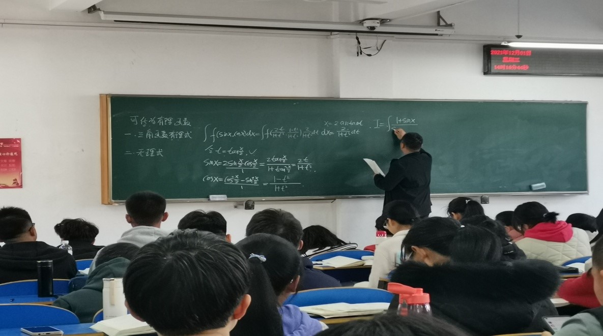 12月1日下午,我院大学数学教学部李志明老师的公开课《高等数学B》在北区综合楼306举行,数学系老师进行了现场观摩。课堂上,李老师首先以“雨课堂”授课软件对学生的测试为基础,与学生进行互动,将同学们疑问较多的题目板书在黑板上,重点对解题思路和原理进行讲解,同时注重对重要知识点的呈现。学生在课堂上能够很轻松的跟上授课老师的节奏,整个课程气氛活跃,同学们精神抖擞。参加观摩的多位老师在听课记录表上是这么评价李老师的课堂教学:李志明老师讲课思路清晰,全程脱稿,对课堂教学节奏的把握非常到位,表达自然、环节流畅、语言生动富有感染力,让晦涩难懂的数学教学变得妙趣横生,非常值得我们年轻老师学习,对我们今后的教学方法改进具有很大的借鉴意义和参考价值。