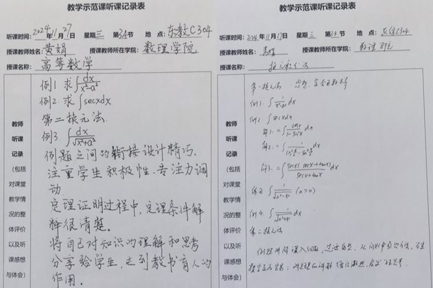 2024年11月27日,在大学数学教学部的组织下,高等数学课程组多名教师在东教楼C304现场观摩了黄娟老师的“高等数学A”课程公开课,并邀请教学督导贾洪彪教授进行了观摩指导。