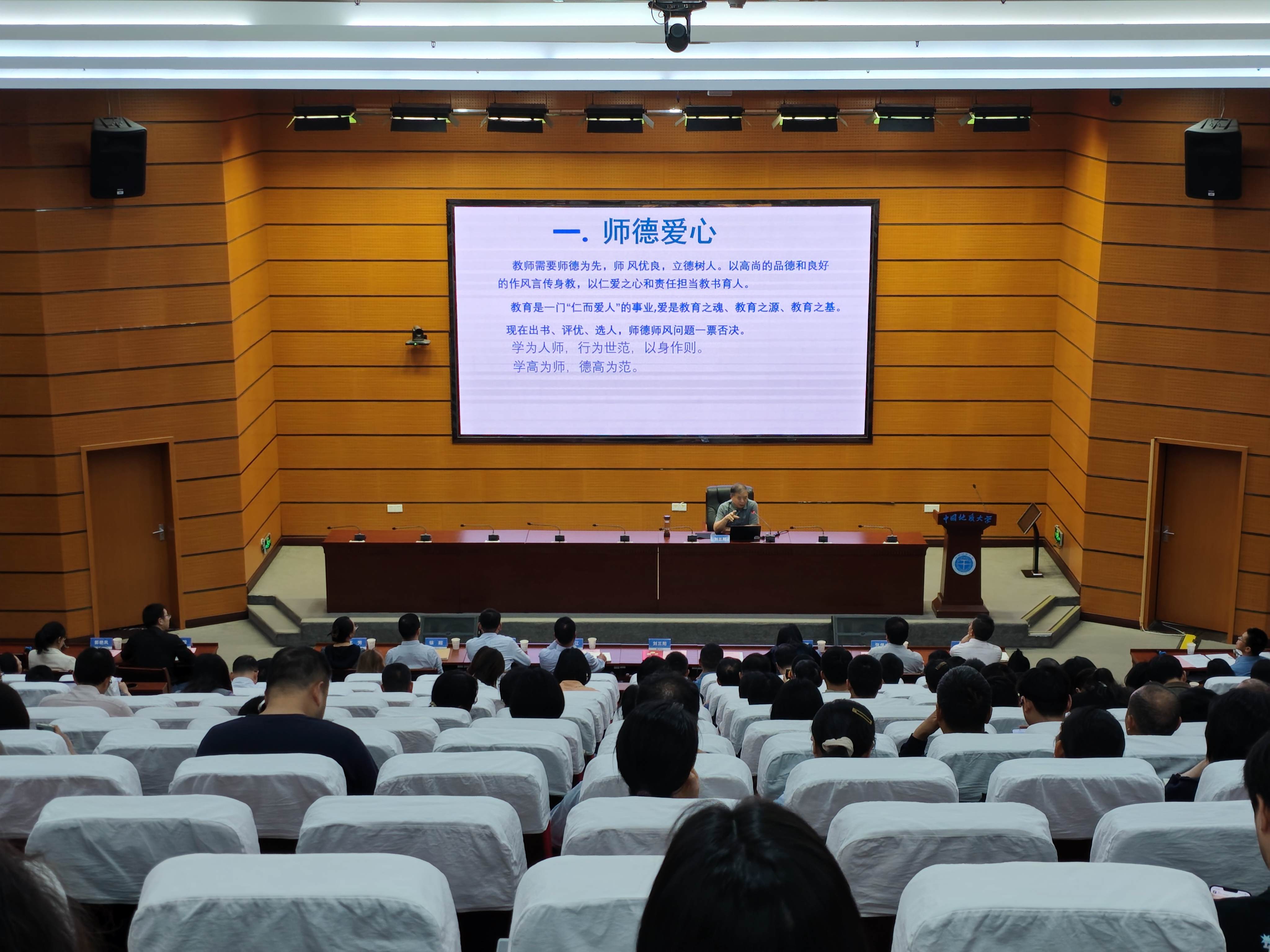 接着刘三阳教授做了题目为《良师怎么炼成》的师德师风主题讲座。讲座结合刘三阳教授的深厚的教育教学工作经历,分享了塑造师德师风以及培养教育情怀的宝贵经验,深入剖析成为良师怎么炼成的关键要素,对教师的师德师风建设起到了思想引领作用。在互动环节中,刘三阳教授结合典型案例回答了与会教师们的问题,引导教师将师德师风准则铭记于心中。郭部长对刘三阳教授的精彩讲座给予了高度的评价,强调了良师的炼成在教育教学工作中的重要性。