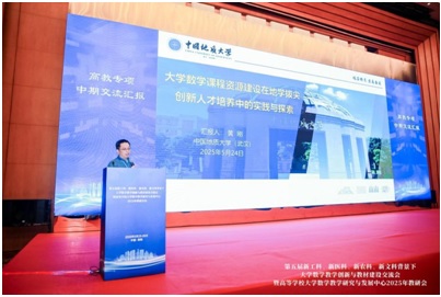 会议期间,高等学校大学数学教学研究与发展中心主任李继成教授解读了2024年度工作总结及2025年立项指南,鼓励高校围绕“AI + 数学教育”“新工科数学课程群建设”等方向开展联合攻关。在分组讨论环节,我院黄刚教授做了“大学数学课程资源建设在地学拔尖创新人才培养中的实践与探索”的项目汇报,介绍了我校大学数学与地学交叉教学团队围绕地球科学与大学数学课程的融合,构建知识点对应的应用体系,形成具有代表性的课堂教学案例,组织编写具有新工科特色的系列教材、推动课程资源数字化建设,积极开展教学实践与探索,提升学生交叉学科素养与应用能力。报告受到了与会同行的高度赞扬。