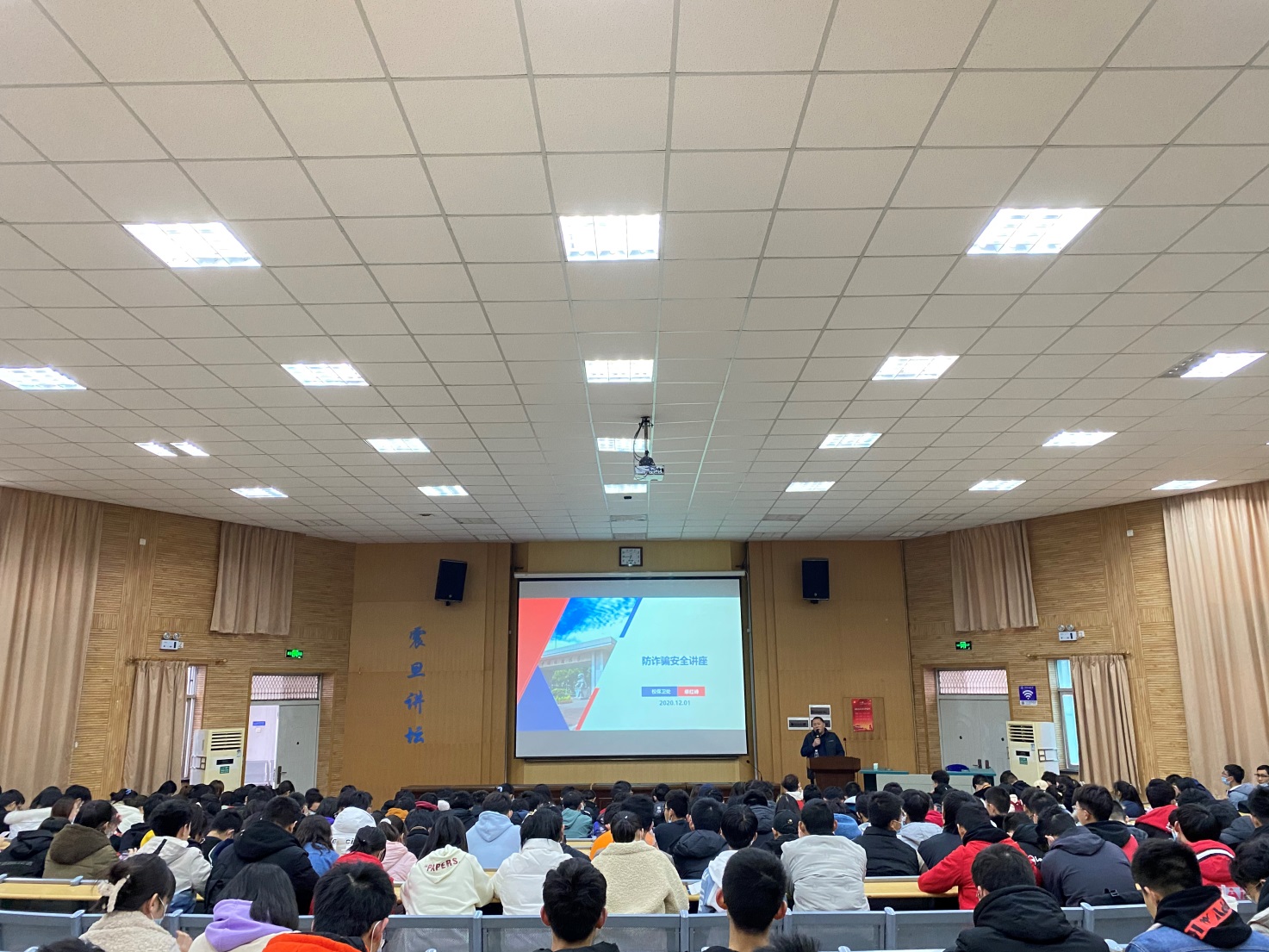 会议的第一项是由保卫处副处长单红峰老师作安全教育讲座,单老师用风趣幽默的语言和鲜活的案例为同学们详细介绍了防盗、防骗以及政治安全的相关知识,受到了同学们的普遍欢迎。