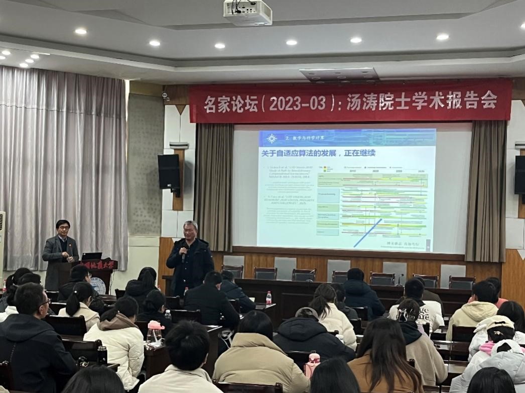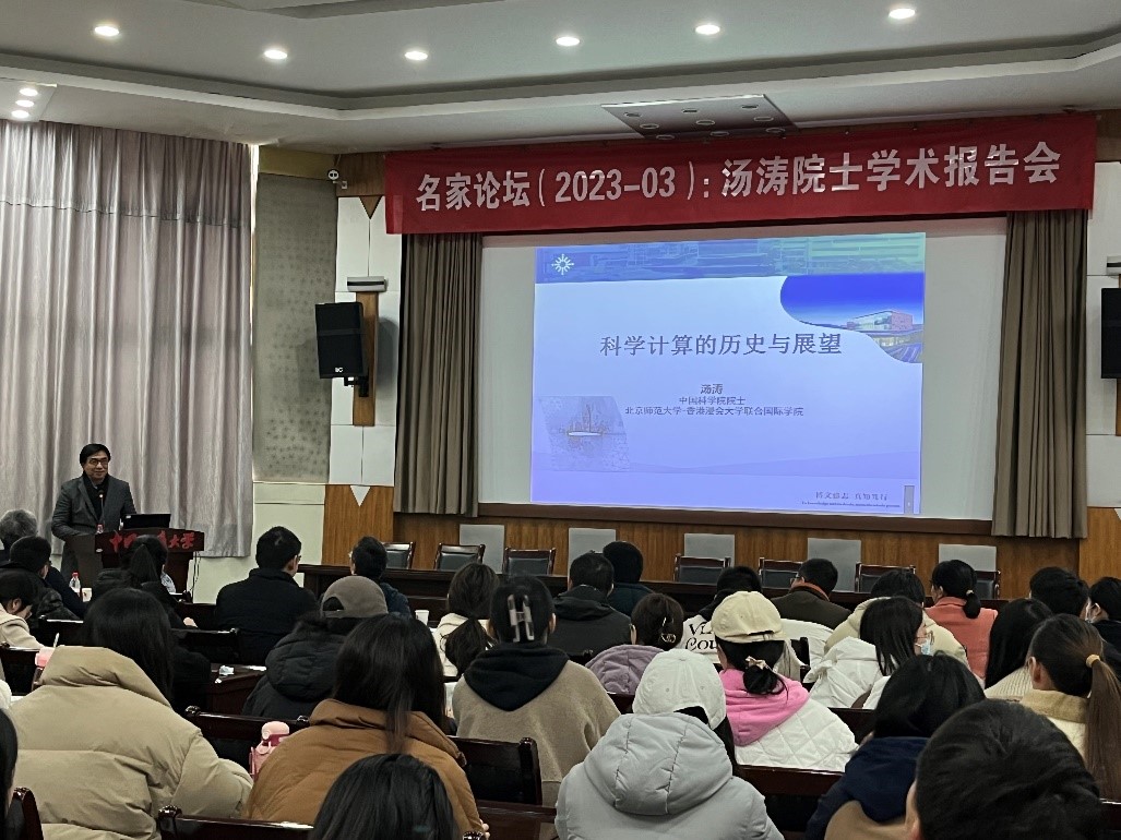 应数学与物理学院院长郭上江教授邀请,北京师范大学-香港浸会大学联合国际学院汤涛院士于2023218日上午在南望山校区八角楼学术报告厅与我院师生进行学术交流,并作题目为:科学计算的历史与展望的学术讲座,校内外100多名师生参加了本次学术讲座。报告会由院长郭上江教授主持。