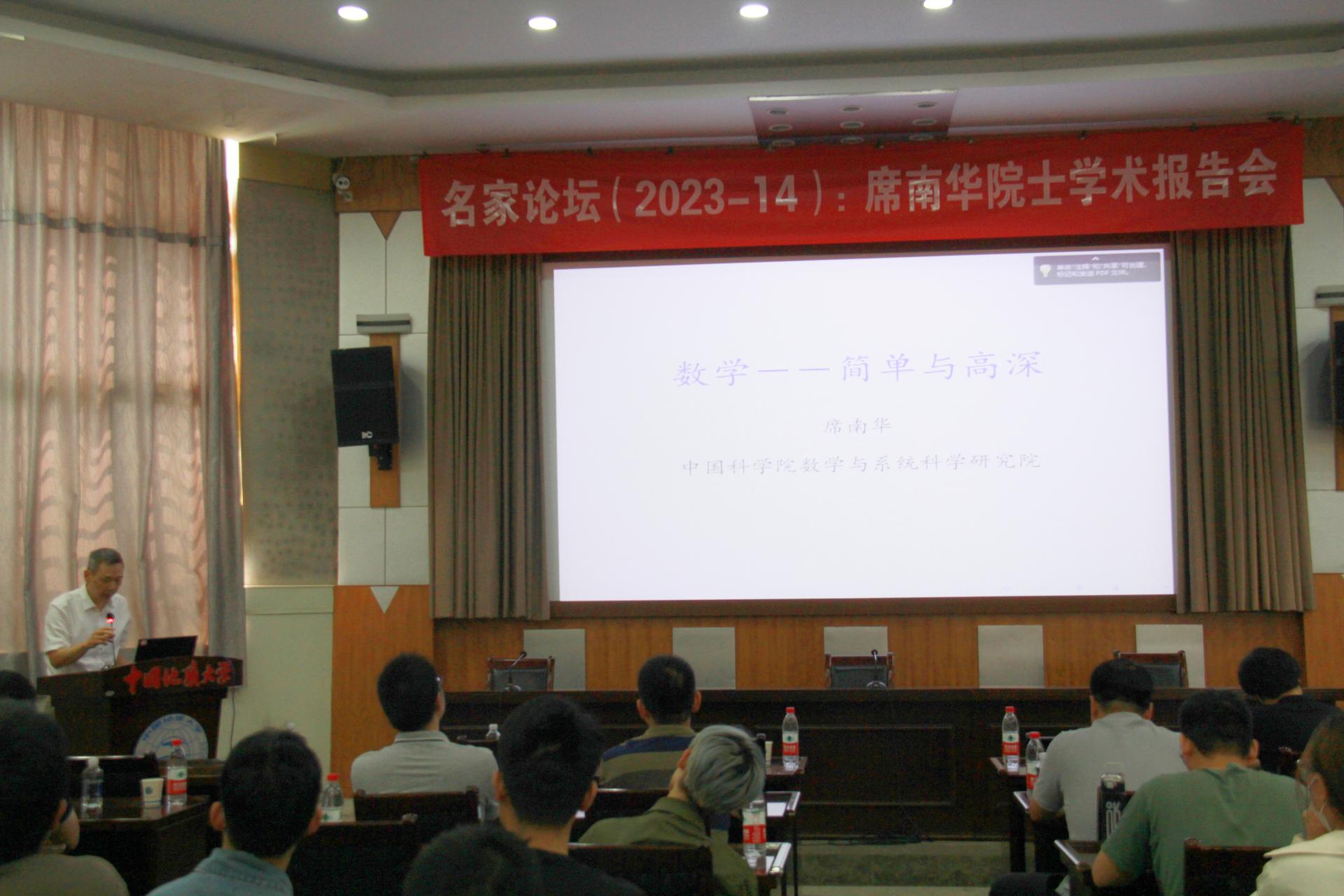 2023年5月27日,中国科学院院士、中国科学院数学与系统科学研究院研究员、上海科技大学副校长席南华教授应邀做客williamhill威廉希尔名家论坛,在南望山校区八角楼学术报告厅作了题为“数学—简单与高深”的学术讲座。报告会由院长郭上江教授主持。